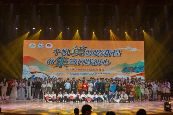 On the evening of November 19th, the 2023 undergraduate welcome party, jointly organized by the School of Environmental Science and Engineering and the School of Integrated Circuits, was grandly held at the Cultural Activity Center. Yu Yingxin, Vice Dean of the School of Environmental Science and Engineering, Shi Yujie, Deputy Secretary of the Party Committee of the School of Integrated Circuits, Cai Jier, General Manager of Guangzhou Mana Yoga Co., Ltd., Qiu Zengfeng, New Student Counselor and New Student Class Teacher representatives from Guangzhou Zengxin Technology Co., Ltd. watched the evening party together with the new students, enjoying the audio-visual feast.