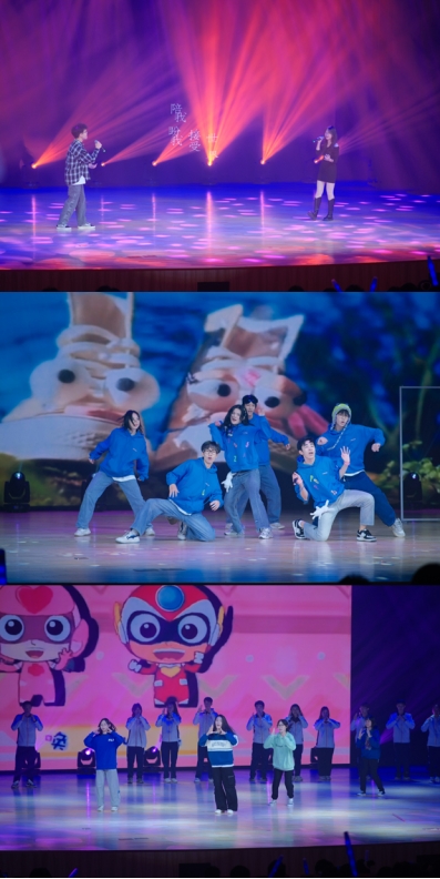 This welcome party is divided into three chapters: "Farewell to the Old and Welcome to the New", "Youth Dancing", and "Setting Sail". The opening dance "Rejuvenating the Bliss" kicked off the welcome party. In the chapter of "Farewell to the Old and Welcome to the New", students from the 2023 Environmental Science Innovation Class adapted a singing and dancing program called "I Still Have a Little Happy Time" to help freshmen relive their childhood memories; "The Rose in the Palm" reminds everyone of their youthful and unforgettable memories, encouraging new students to embrace a brand new university life with moving songs. In the chapter of "Youth Dance", alumni Cai Jier brings a wonderful yoga performance to encourage new students to strengthen their physical exercise and physical fitness to face more unknown challenges, and achieve comprehensive development in morality, intelligence, physical fitness, aesthetics, and labor. "Sisi Xi" and "Little Town Girl" respectively use ethnic and Western instruments as accompaniment. The actors present beautiful songs to the audience with full enthusiasm and youthful confidence, fully demonstrating their love for campus and life. The atmosphere on site is lively and climaxing.