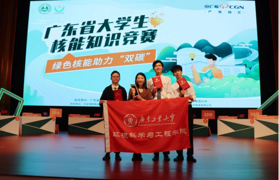 On June 1st, the final of the Guangdong Province College Student Nuclear Energy Knowledge Competition "Green Nuclear Energy, Assisting 'Dual Carbon'", guided by the Guangdong Provincial Department of Ecology and Environment, organized by the Guangdong Radiation Protection Association and China General Nuclear Power Co., Ltd., was held in Shunli at the Daya Bay Nuclear Power Base Cultural Center in Shenzhen. The student team led by Zhang Ke and Zhan Chungeng from the School of Environmental Science and Engineering won the runner up in the competition.