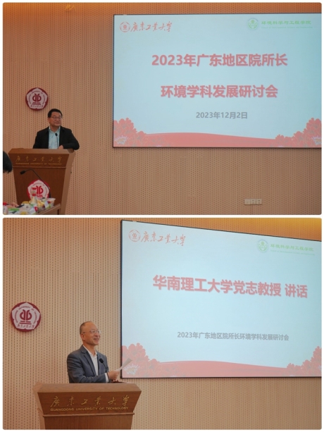 On December 2, 2023, in order to promote the environmental discipline of our university to keep up with the development idea of "building plateau and climbing peak", comprehensively implement the "1 + 2 + 3" climbing plan discipline upgrading project and the goal of "rushing first-class" high-level university construction, strengthen the development of science characteristics, and promote the academic exchange, innovation and cooperation of environmental discipline in Dawan District of Guangdong, Hong Kong and Macao. The "Seminar on the Development of Environmental Discipline for Directors of Academies in Guangdong" was held in the School of Environmental Science and Engineering, Guangdong University of Technology.