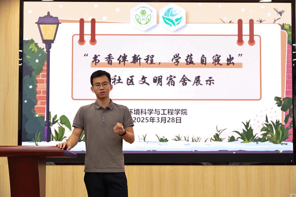 一方雅室,承载青春记忆;几净窗明,彰显生活态度。环境科学与工程学院以“书香伴新程,学蕴自寝出”为主题开展2025年社区文明宿舍评选活动。为鼓励同学们积极参与文明社区的建设,3月28日晚,学院于工学三号馆208开展优秀文明宿舍展示活动,与同学们进行面对面经验交流分享,肖家祺老师出席本次活动。