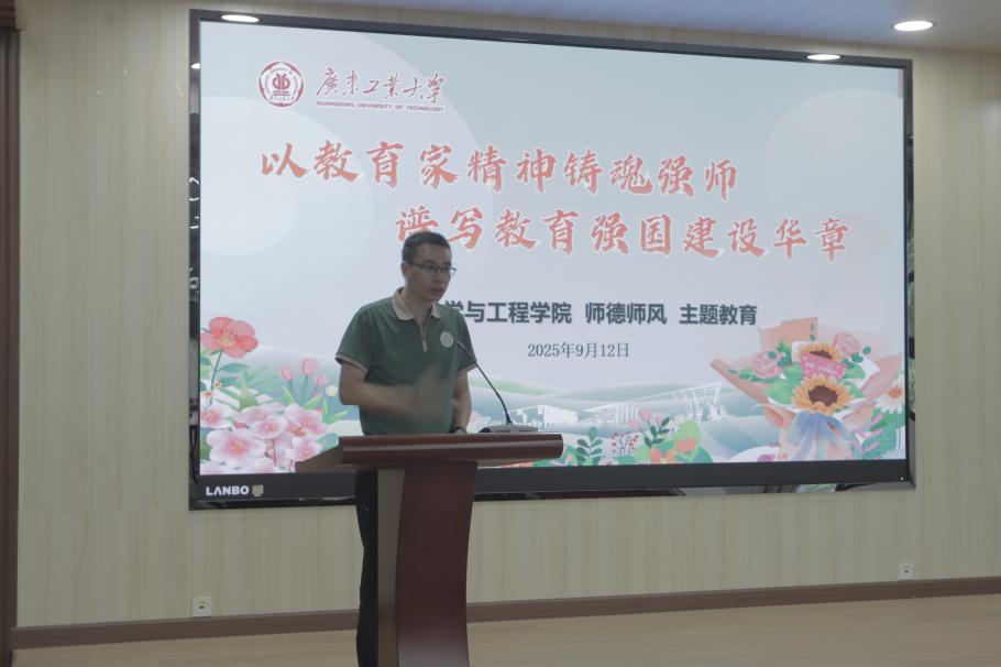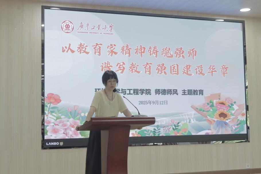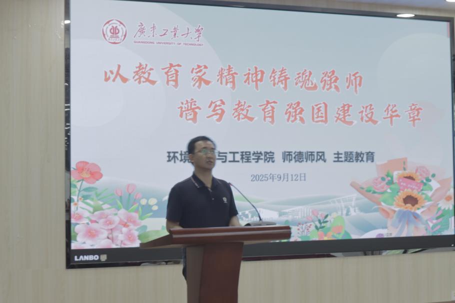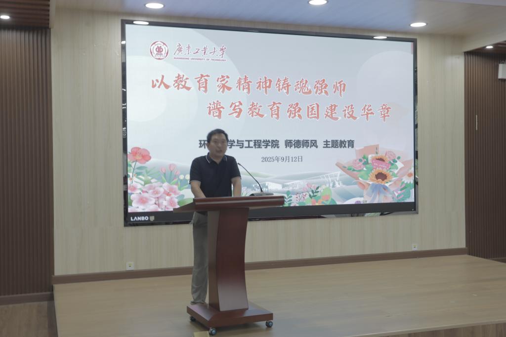 为深入贯彻落实《中共中央 国务院关于弘扬教育家精神加强新时代高素质专业化教师队伍建设的意见》,强化以教育家精神为引领,持续深化师德师风建设,引导广大教师牢固树立“为党育人、为国育才”的使命担当,环境科学与工程学院于2025年9月12日在工3-208召开2025年秋季学期教职工大会暨“以教育家精神铸魂强师,谱写教育强国建设华章”师德建设主题教育活动。