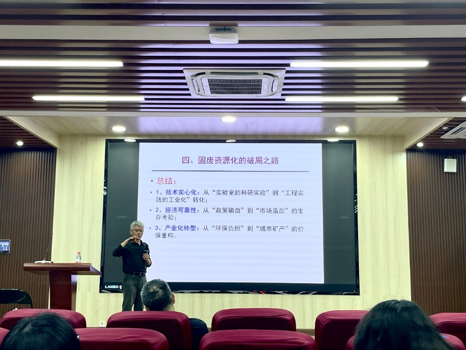 紧接着,刘阳生教授提出破解困境的路径,固废资源化需以"环境安全为底线、技术创新为引擎、经济可行为驱动",破解"技术空心化-政策依赖-市场失灵"三角困境,通过工业化应用、市场化造血和产业化转型,实现从"环保负担"到"城市矿产"的价值重构,最终达成减量-再生-友好的可持续发展闭环。他特别强调,固废资源化需回归环境管理初心,通过技术实心化、经济可行性和产业化转型,实现从“高值化迷思”到“务实降级”的跨越,最终构建可持续的循环经济体系。